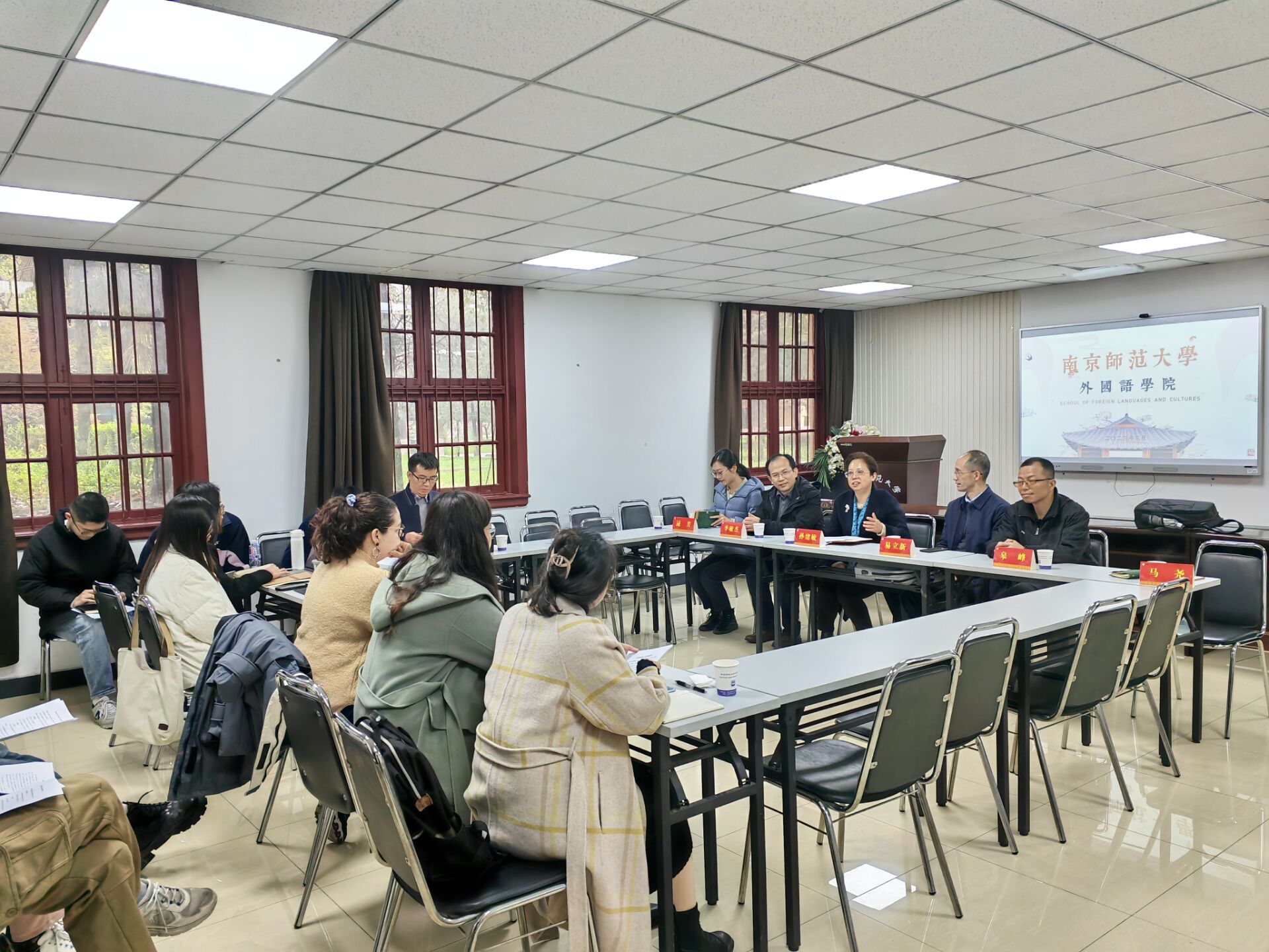 在场博士生们轮流发言,与易立新院长一行就招聘条件、职业发展、学术支持等问题进行深入交流。孙绪敏书记鼓励大家,既要有新时代外语人才的“洋气”,又要产学研结合,在“讲好中国故事”的时代背景下扎根中国大地做研究,在语言文化的“自塑”与“他塑”间做中华优秀文化的传播者。