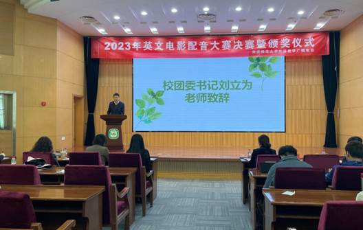 首先,校团委书记刘立为老师为比赛致辞。刘立为老师指出,南师外语教学广播电台历史悠久,活动丰富,本次由我校电台举办的比赛很好地丰富了学生的课余生活,体现了南师学子良好的外语水平和南师大浓厚的学习氛围。