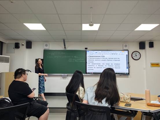 On May 17, 2023, Yulia, an expert in Russian language teaching, gave a lecture to the students majoring in Russian at Nanjing Normal University in Xuehai Building. The topic of the lecture was "Improving your Russian writing skills". In the lecture, Yulia seriously and humorously explained the key knowledge, promoted everyone’s understanding of relevant sentence patterns and expressions. She also kindly and actively interacted with students. The lecture was a great success and the students gained a lot from it. (供稿人:皮皮虾