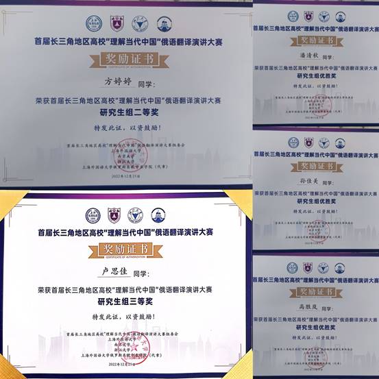 外院俄语专业学生分获首届长三角地区高校“理解当代中国”俄语翻译演讲大赛二等奖、三等奖、优胜奖