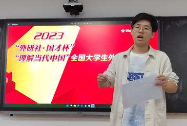 本次校园选拔赛共有259位选手报名参赛,采用线上线下相结合的形式,分为两轮进行。9月21日,两百多位参赛选手分为9组参加了第一轮线上定题演讲,演讲主题为“The Chinese Path to Modernization”。25日,在第一轮中成功晋级的26位选手参加了第二轮选拔。面对难度更高的定题即兴演讲和现场问答环节,各位选手准备充分,用生动的语言和独到的见解展示出当代大学生积极向上的青春风采,彰显了用外语讲好中国故事的赛事宗旨。