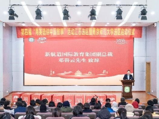 南京新航道大学生事业部总经理俞诚栋对第四届 “用英语讲中国故事”活动进行了详细的介绍。他提到,本次活动是响应国家号召的纯公益活动,参赛选手能够获得专业指导,帮助其提高自身能力。此外,他也对活动的参赛流程、参赛要求、时间安排,奖项设置等进行了详细介绍。最后,他鼓励南师学子积极参与、展现风采。