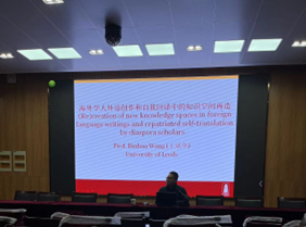 杰出校友、英国利兹大学终身讲席教授王斌华为母校师生带来一场题为”探讨海外学人外语创作和自我回译中的知识空间再造”的专题讲座。王斌华教授以美籍华裔历史学家Ray Huang的英文专著1587, a Year of No Significance的英文创作和中文自译为例,通过对该著作的创作、自译和出版过程的档案分析和对英语、汉语版本的平行语料库对比分析,为学术自译者的能动性和自主性提供了实证理据,并揭示海外学人如何通过外语创作中的隐性翻译为异语学界创造新的知识空间、如何通过自我回译为其母语学界再造异质性的知识空间。