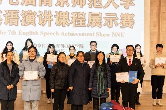 在展示赛结束后,田朝霞老师对同学们的表现进行了精彩的点评。她肯定了同学们在展示赛中的出色表现,并对同学们在课程学习中的努力付出表示衷心的感谢。希望这一活动能让演讲课程在同学们的心中留下深刻的印象,并鼓励同学们继续享受学习生活。随后,英语演讲与辩论教学团队的老师们为获奖选手和队伍颁发了奖状和纪念品。整场活动进行得有条不紊、欢乐和谐,在主持人真挚的祝福语中,此次演讲展示赛圆满落下帷幕。
