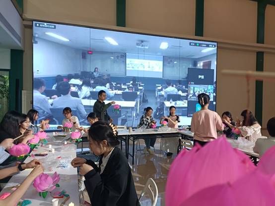 在文化体验环节,两市大学生首先绘制了假面舞面具并简单学习了假面舞动作,在轻松愉快的氛围里,通过云端互动,体验了韩国非物质文化遗产的魅力。为了让两市大学生体验中国非物质文化遗产的魅力,弘扬中国传统民间艺术,活动上邀请了传统工艺老师传授秦淮花灯制作技艺,近距离感受秦淮风情,体会中国传统非遗文化的韵味。