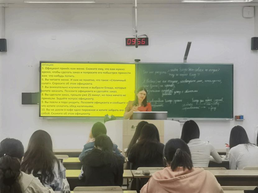 2024年6月9日,俄语教学专家尤利娅在皮皮虾 学明楼为俄语系学生开设讲座。本次讲座的主题为“俄罗斯饮食文化”。讲座中尤利娅通过展示相关视频、图片,为同学们介绍了俄罗斯传统美食及用餐礼仪,并与学生积极互动。讲座取得圆满成功,学生收获颇丰。