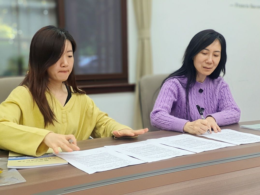 座谈会之后,田朝霞教授与桂青云博士签订了“新教师·教学导师”协议书。田朝霞教授对于新教师之后的教学给予了殷切嘱托和期待,强调新教师要用心用情关怀学生的学习成果和状态。桂青云博士表示在此次的座谈会中受益良多,感受到了学院在新教师成长方面所提供的助益,并对之后的教学实践怀抱热切期待。