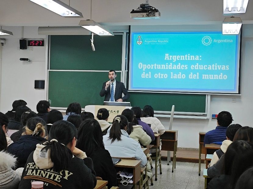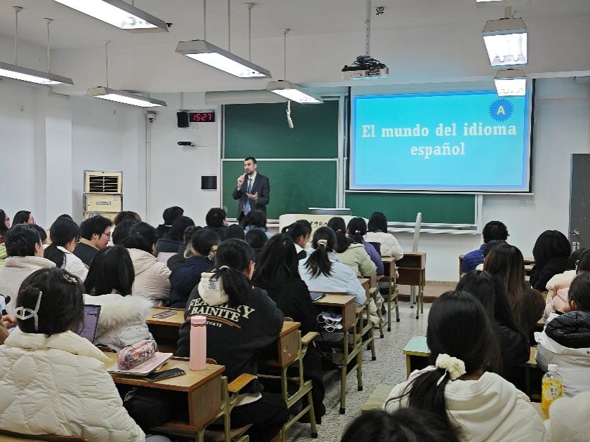 康德铭领事在讲座中特别强调了中国与阿根廷以及拉丁美洲国家之间友好关系的重要性,并鼓励学生们认真学习西班牙语,为推动中拉命运共同体的建设贡献自己的一份力量。他的话语不仅激发了学生们的学习热情,也为他们的未来发展指明了方向。