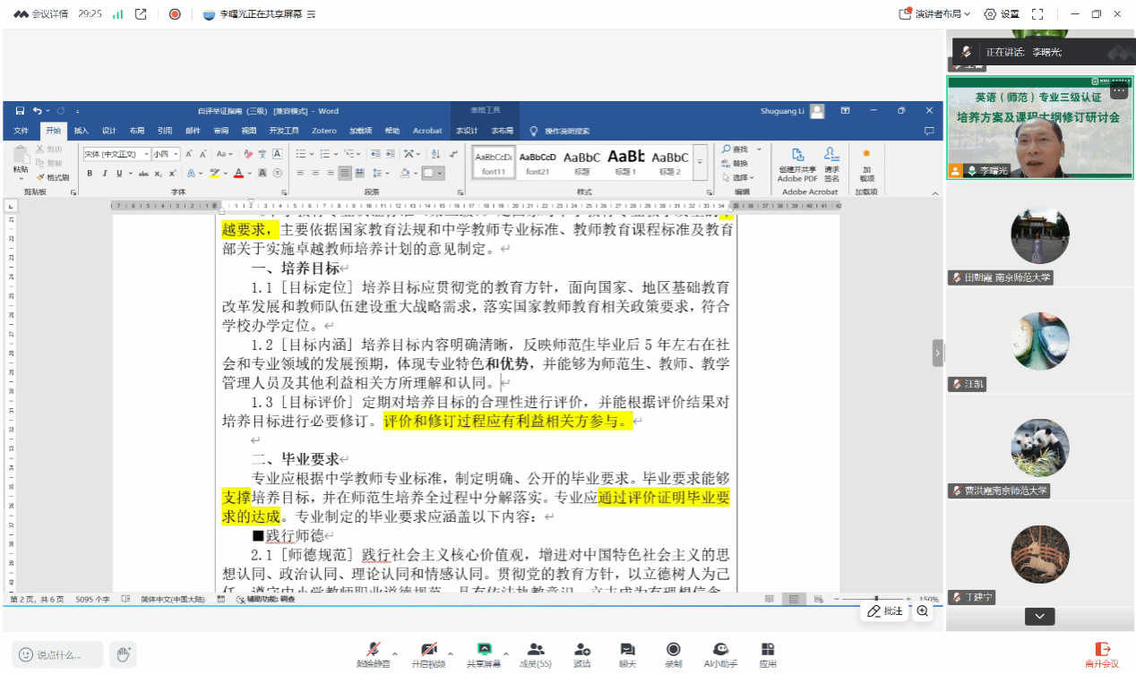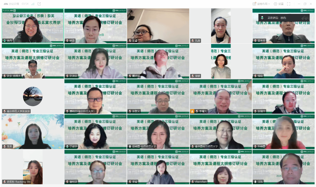 师范“以评促建”认证工作的顺利开展。相信通过此次会议,随着全体教师对师范认证的要求和培养方案及课程大纲修订的更深入理解和认识,我校的英语(师范)人才培养也将朝着“卓越”教师更迈进一步。
