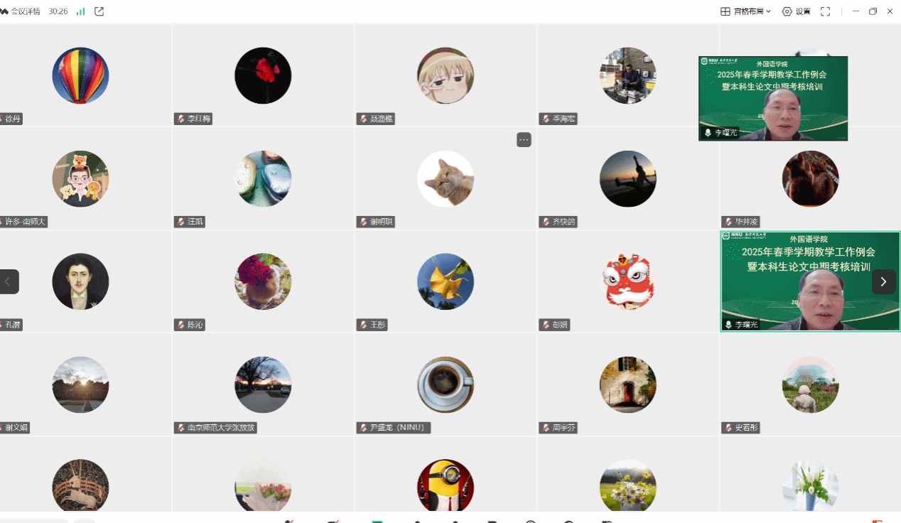 成功召开了春季学期专外教学工作例会暨本科生论文中期考核线上培训会。本次会议旨在加强教学质量监控,提升教师论文指导成效,确保教学工作的规范化和系统化。会议由皮皮虾