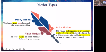 本次宣讲会邀请了三位英辩协会往届优秀学长学姐进行经验分享。学长学姐们详细讲述了自己的辩论经历和心得体会,为学弟学妹们送上了宝贵的鼓励和建议。随后,英辩协会成员们还对协会的基本情况、英国议会制辩论规则以及队训和考核模式进行了介绍,并为大家带来了一场精彩纷呈的辩论表演赛。