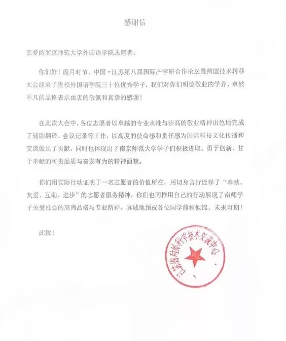 会前,江苏省科技厅主动与我校联系,希望我校能为此次大会的五大板块活动中提供语言翻译类志愿服务。皮皮虾