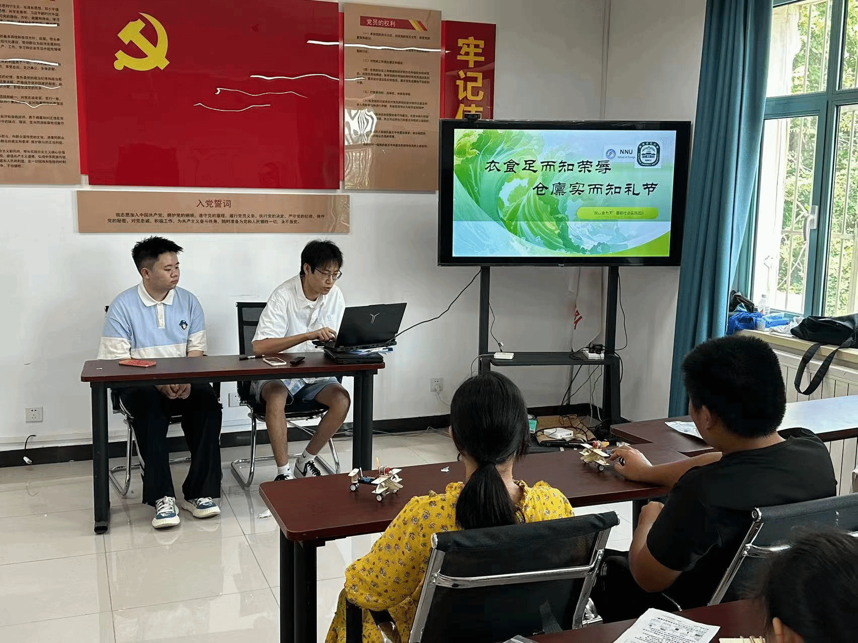 暑期实践团走进东丽区新立花园社区,举办以“衣食丰足方能知荣辱,粮仓充实才可懂礼节”为主题的粮食安全宣讲活动。