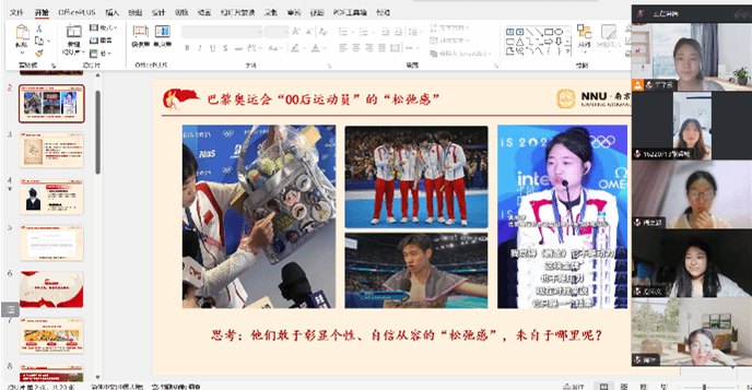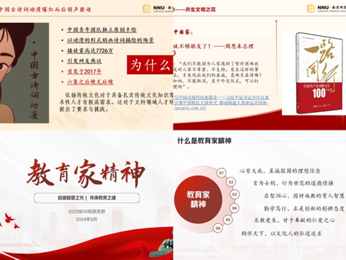 凝心聚气淬思想,培根铸魂育新人。团队前往江苏省邳州市英华路实验学校、泰兴市第一高中、南京市阳光里社区进行团课宣讲,带来了“文化自信树底气,守正创新促发展”主题团课。由巴黎奥运会“00后运动员的松弛感”引入,以“中华优秀传统文化的传承、创新、国际传播”为线索,援引中式卡点变装、国风动漫等多个案例,带领青年解码“文化自信”。团队成员紧密结合习近平文化思想的内容,深入浅出讲解了“两个结合”中“第二个结合”的深刻内涵,呼吁青年自觉做中华文化的弘扬者、传播者、建设者,彰显新时代青年的文化自信和使命担当,为铸就中华文化新辉煌贡献青春力量!