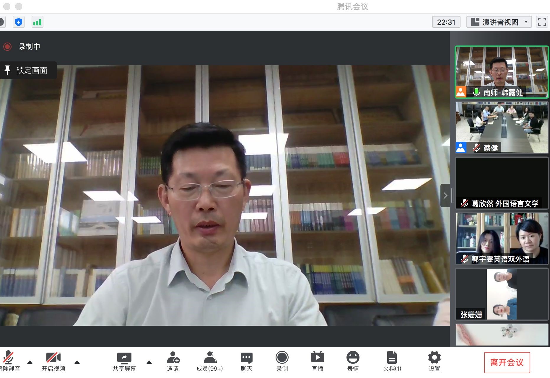 2021级本科新生及家长见面会”。外院党委书记蒋其琴、院长王永祥、党委副书记田军、副院长田朝霞、团委书记蔡健、2021级本科生辅导员韩露健与全体2021级269名新生及家长在云端参加了本次视频会议。见面会由党委副书记田军主持。