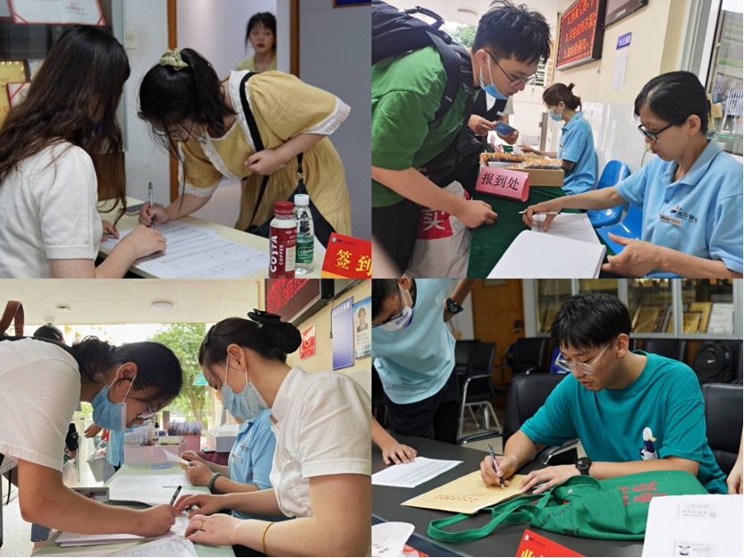 驻守在各重要地点的志愿者们也“火力全开”。宿舍楼内,他们协助宿管维持现场秩序,帮助新生搬运行李,解答新生住宿疑惑,引导新生完成登记,让新同学感受到家的温暖;报到处旁,他们帮助接待新生、收发材料、分发礼品、整理道具,为迎新活动顺利展开尽心尽责。